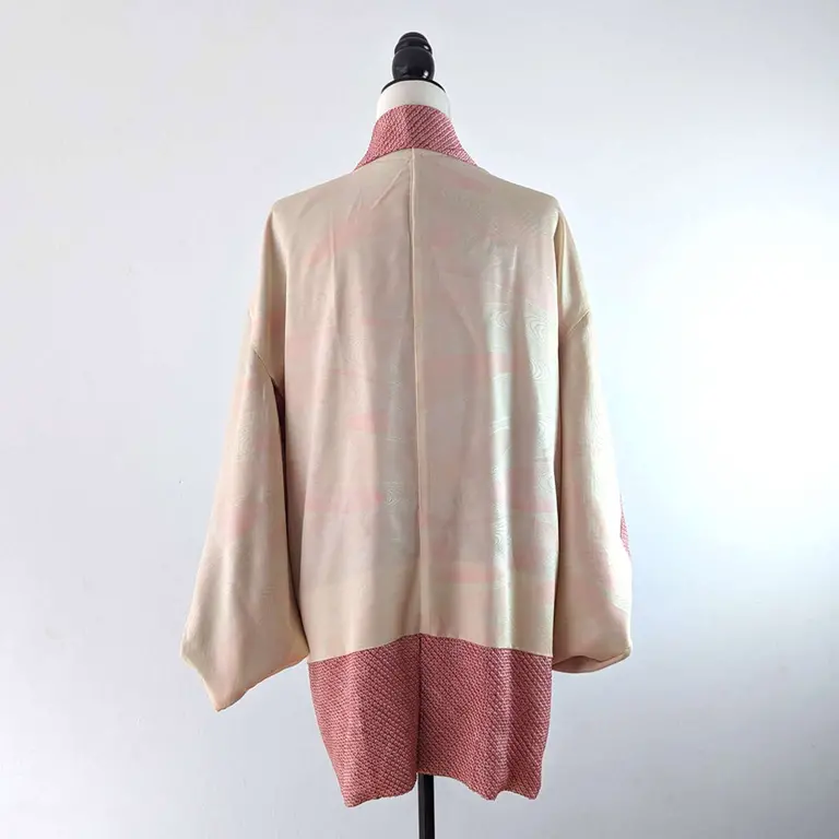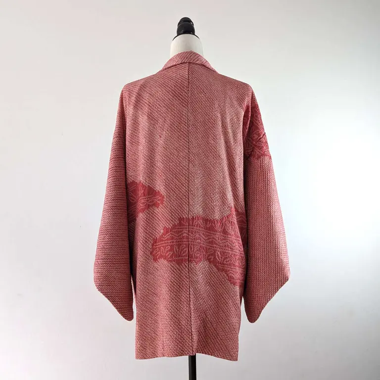 Se trata de un haori de shibori, un color tradicional japonés llamado "botan-iro".