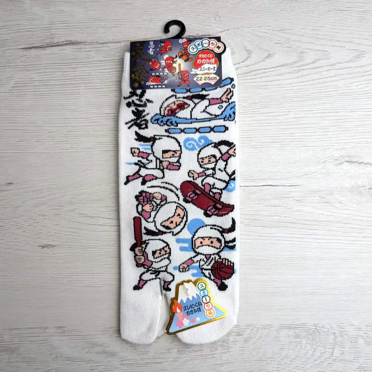 Calcetines estilo Tabi con diseño de ninjas 🥷 | Lleva el espíritu de los guerreros japoneses con estos calcetines tabi únicos, que separan el dedo gordo del resto para mayor comodidad y estilo. Inspirados en el calzado tradicional japonés, estos calcetines son perfectos para los amantes de la cultura japonesa y el estilo auténtico. Con divertidos estampados de dibujos de ninja, añadirán un toque de aventura y tradición a tu look diario. Ideales para combinar con sandalias o simplemente para dar un toque especial a tu outfit.