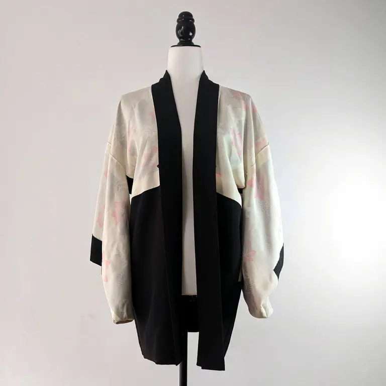 El haori se confeccionaba completamente a mano durante las décadas de 1960 a 1980, lo que le confiere un valor artesanal y una atención meticulosa en cada detalle de su fabricación.