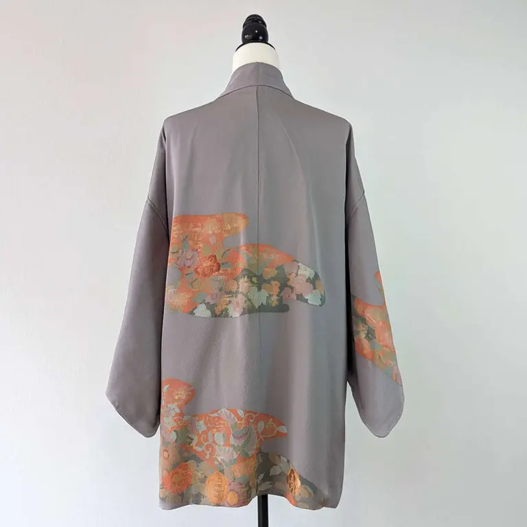 El haori se confeccionaba completamente a mano durante las décadas de 1960 a 1980, lo que le confiere un valor artesanal y una atención meticulosa en cada detalle de su fabricación.