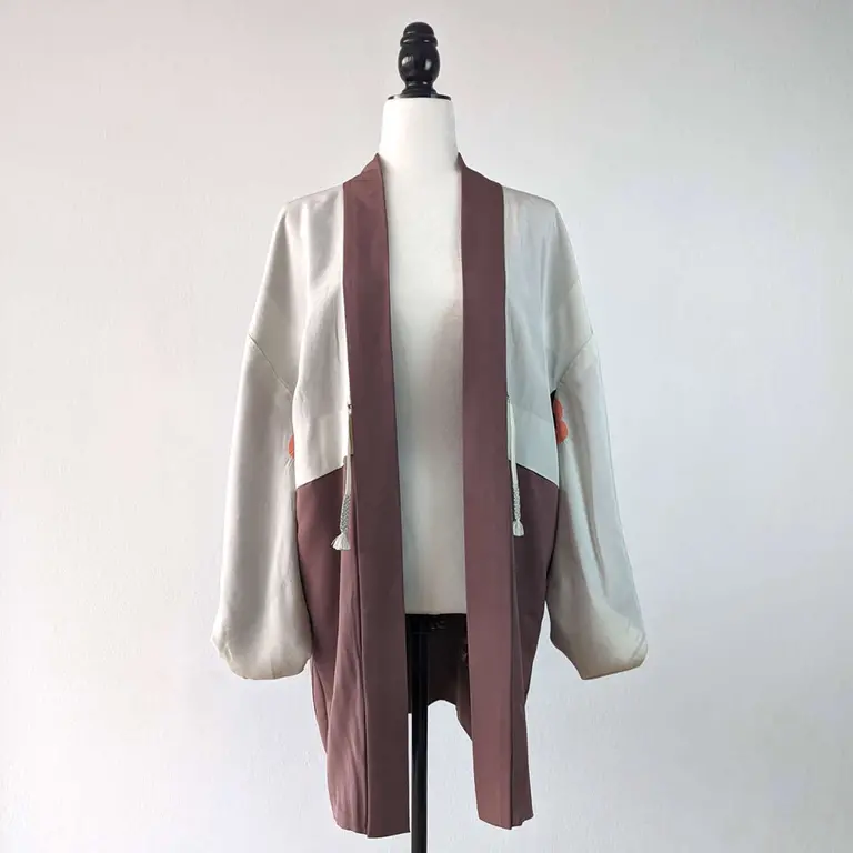 El haori se confeccionaba completamente a mano durante las décadas de 1960 a 1980, lo que le confiere un valor artesanal y una atención meticulosa en cada detalle de su fabricación.