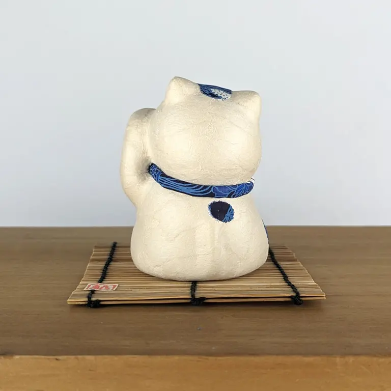 Sumérgete en la magia de Japón con nuestro Maneki-neko de papel maché, un gato de la suerte encantador. Este gato atrae la prosperidad agitando la pata y está hecho a mano con mucho cuidado por hábiles artesanos. Cada uno es único, reflejando la autenticidad y el encanto de la cultura japonesa. ¡Una pieza especial que lleva consigo la buena fortuna y la tradición japonesa!