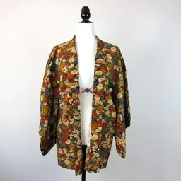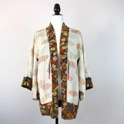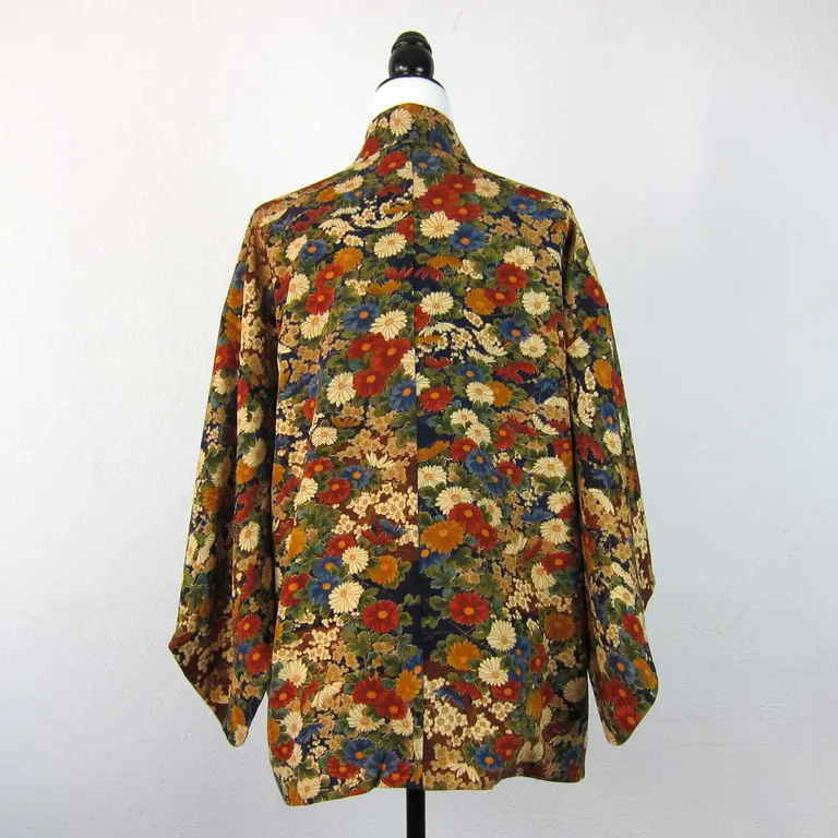 Haori vintage con estampado de varios colores de kiku (chrysanthemum morifolium).