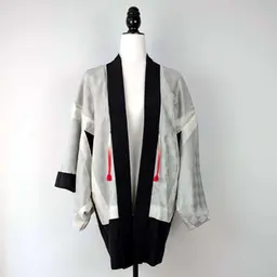 El haori es una chaqueta tradicional japonesa que normalmente se lleva encima del kimono. La prenda queda abierta por la parte de enfrente aunque se puede ajustar con un cordón para que quede más cerrada.