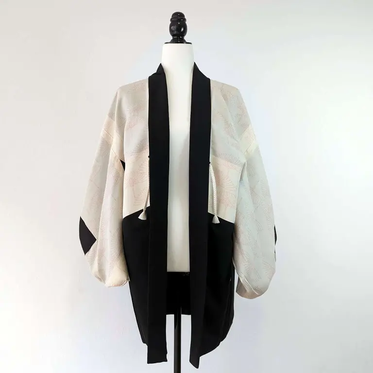 El haori se confeccionaba completamente a mano durante las décadas de 1960 a 1980, lo que le confiere un valor artesanal y una atención meticulosa en cada detalle de su fabricación.